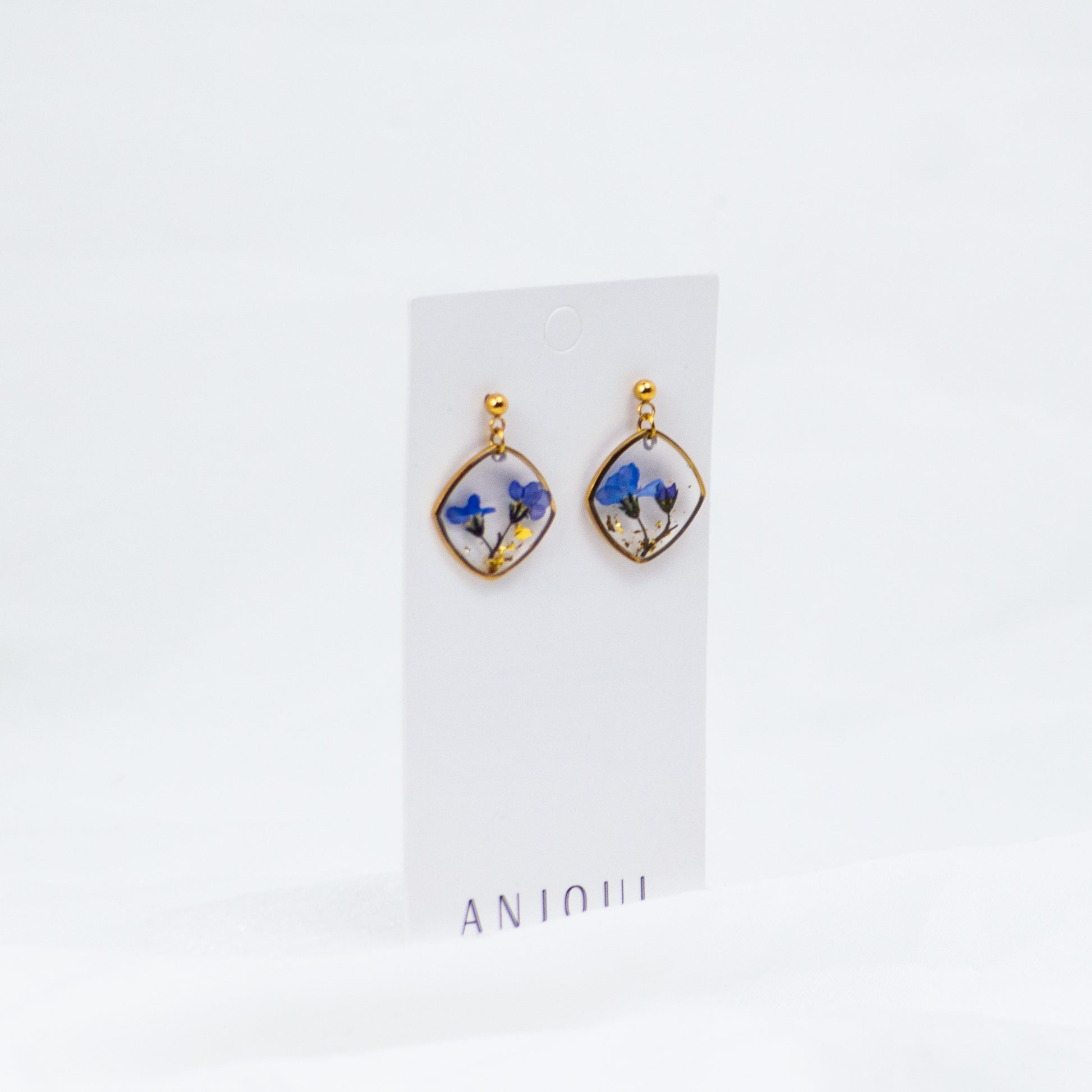 Zwei echte Vergissmeinnicht-Stängel, eingebettet in klaren Harz. Diese Ohrringe tragen ein Stück echter Natur – sichtbar, greifbar, unvergänglich.